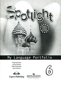 In practice, "Language Portfolios" may include a project or other examples of written work, computer diskettes (with some work or drawings completed inside or outside the class), video cassettes (with your favourite story or with performances of songs, school plays, etc), certificates, reports from your teachers, or even a collection of objects or pictures. Это и многое другое вы найдете в книге Spotlight 6: My Language Portfolio / Английский язык. Языковой портфель. 6 класс (Вирджиния Эванс, Дженни Дули, Ольга Подоляко, Юлия Ваулина)
