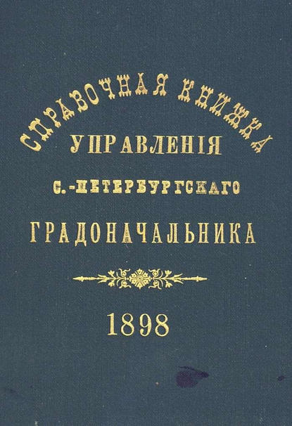 | Полное название книги | Коллектив авторов, Справочная книжка С.-Петербургского градоначальства и городской полиции. Выпуск 1, составлена по 1 мая 1898 г. |