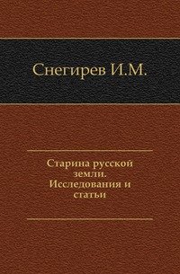 | Полное название книги | И. М. Снегирев Старина русской земли |