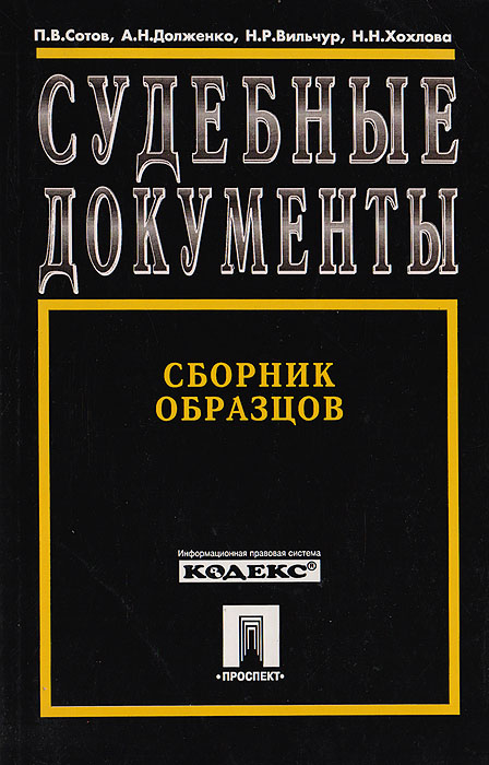 | Полное название книги | Долженко А. Н., Сотов П.В., Хохлова Н. Н., Вильчур Н. Р. Судебные документы. Сборник образцов |