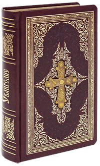 Уникальное иллюстрированное подарочное издание с золотым и блинтовым тиснением, трехсторонним золотым обрезом, шелковым ляссе и инкрустированным металлическим православным крестом на обложке.