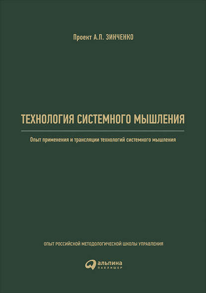 | Полное название книги | А. П. Зинченко, В. Б. Христенко, Н. Ф. Андрейченко, А. В. Макин, А. Г. Реус, Д. С. Талянский, С. А. Малявина, С. Б. Крайчинская, С. А. Семин Технология системного мышления: Опыт применения и трансляции технологий системного мышления |