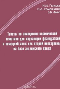 | Полное название книги | И. А. Ременникова, Э. Б. Фигон, И. М. Галецкая Тексты по авиационно-космической тематике для изучающих французский и немецкий язык как второй иностранный на базе английского языка. Учебное пособие |