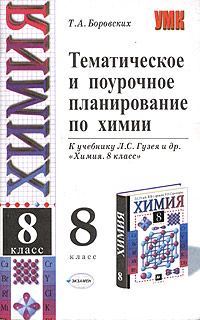 | Полное название книги | Т. А. Боровских Тематическое и поурочное планирование по химии. 8 класс. К учебнику Л. С. Гузея и др. "Химия. 8 класс" |