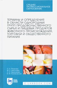| Полное название книги | Мария Андреевна Николаева, Валерий Михайлович Позняковский, Ольга Александровна Рязанова Термины и определения в области однородных групп продовольственного сырья и пищевых продуктов |