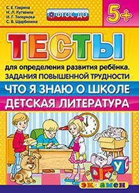 | Полное название книги | С. В. Щербинина, С. Е. Гаврина, И. Г. Топоркова, Н. Л. Кутявина Тесты для определения развития ребенка. Задания повышенной трудности. Что я знаю о школе. Детская литература |