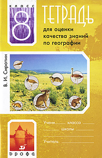 | Полное название книги | В. И. Сиротин Тетрадь для оценки качества знаний по географии. 8 класс |