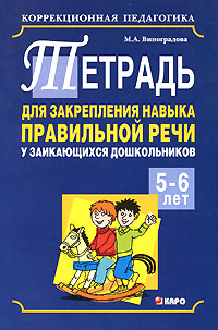| Полное название книги | М. А. Виноградова Тетрадь для закрепления навыка правильной речи у заикающихся дошкольников 5-6 лет |