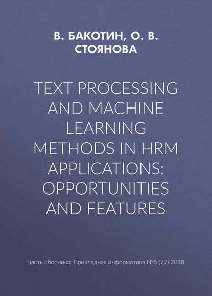 | Полное название книги | О. В. Стоянова, В. Бакотин Text processing and machine learning methods in HRM applications: opportunities and features |
