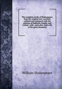| Полное название книги | Уильям Шекспир The complete works of Shakespeare, from the original text: carefully collated and compared with the editions of Halliwell, Knight, and Colloer: with . each play; and a life of the great drama |