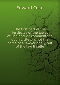 | Полное название книги | Edward Coke The first part of the institutes of the lawes of England, or, commentarie upon Littleton: not the name of a lawyer onely, but of the law it selfe |