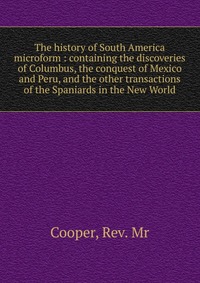 The history of South America microform. Containing the discoveries of Columbus, the conquest of Mexico and Peru, and the other transactions of the Spaniards in the New World. Воспроизведено в оригинальной авторской орфографии издания 1789 года (издательство "London : Printed for E. Newberry ..."). Это и многое другое вы найдете в книге The history of South America microform (Cooper)