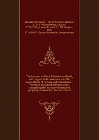 The interest of Great Britain considered, with regard to her colonies, and the acquisitions of Canada and Guadaloupe. To which are added, Observations concerning the increase of mankind, peopling of countries, &c. Microform. Воспроизведено в оригинальной авторской орфографии издания 1761 года (издательство "London : Printed for T. Becket ..."). Это и многое другое вы найдете в книге The interest of Great Britain considered (Benjamin Franklin)