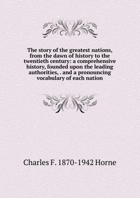| Полное название книги | Charles F. 1870-1942 Horne The story of the greatest nations, from the dawn of history to the twentieth century: a comprehensive history, founded upon the leading authorities, . and a pronouncing vocabulary of each nat |