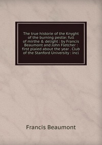 | Полное название книги | Francis Beaumont The true historie of the Knyght of the burning pestle: full of mirthe & delight : by Francis Beaumont and John Fletcher : first plaied about the year . Club of the Stanford University : i |