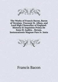 | Полное название книги | Francis Bacon The Works of Francis Bacon, Baron of Verulam, Viscount St. Alban, and Lord High Chancellor of England: Historia Et Inquisitio Prima De Sono Et Auditu. . Rerum. Instaurationis Magnae Pars Iv. |