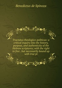 | Полное название книги | Benedictus de Spinoza Tractatus theologico-politicus: a critical inquiry into the history, purpose, and authenticity of the Hebrew scriptures; with the right to free . but necessarily bound up with true pi |