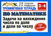| Полное название книги | О. Узорова, Е. Нефедова Тренинговая тетрадь по математике. Задачи на нахождение числа по доле и доли по числу. 3-4 классы |