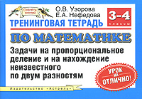 | Полное название книги | О. Узорова, Е. Нефедова Тренинговая тетрадь по математике. Задачи на пропорциональное деление и на нахождение неизвестного по двум разностям. 3-4 классы |