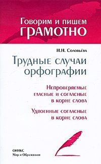 | Полное название книги | Н. Н. Соловьева Трудные случаи орфографии. Непроверяемые гласные и согласные в корне слова. Удвоенные согласные в корне слова |