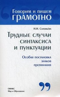 | Полное название книги | Н. Н. Соловьева Трудные случаи синтаксиса и пунктуации. Особая постановка знаков препинания |