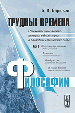 | Полное название книги | Б. В. Бирюков Трудные времена философии. Т.2: Отечественные логика, история и философия в последние сталинские годы. Ч.2: Идеологические кампании 1948-1950 годов. Логическое и психологическое. Богоборческа |