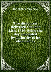 | Полное название книги | Jonathan Mayhew Two discourses delivered October 25th. 1759. Being the day appointed by authority to be observed as |
