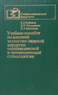 | Полное название книги | Б. Д. Кабаков, В. И. Лукьяненко, П. З. Аржанцев Учебное пособие по военной челюстно-лицевой хирургии, терапевтической и ортопедической стоматологии |
