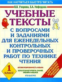 | Полное название книги | О. Узорова, Е. Нефедова Учебные тексты с вопросами и заданиями для еженедельных контрольных и проверочных работ по технике чтения. 2 класс |