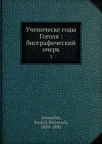 | Полное название книги | В. П. Авенариус Ученическе годы Гоголя: биографический очерк |