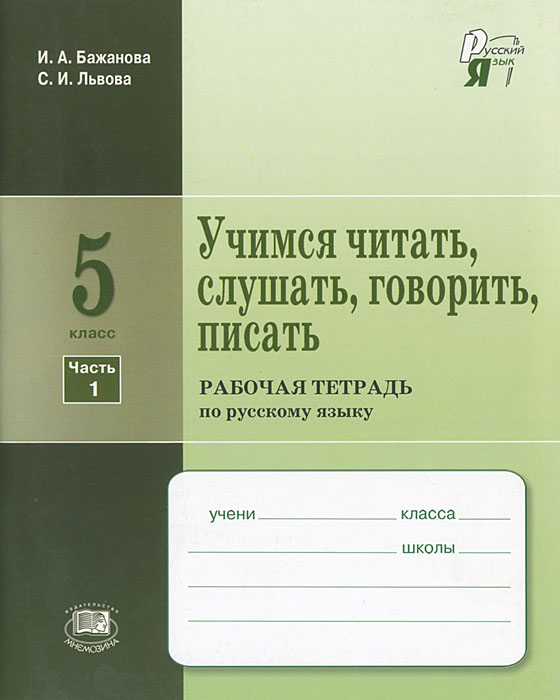 | Полное название книги | С. И. Львова, И. А. Бажанова Учимся читать, слушать, говорить и писать. 5 класс. В 2 частях. Часть 1. Рабочая тетрадь |