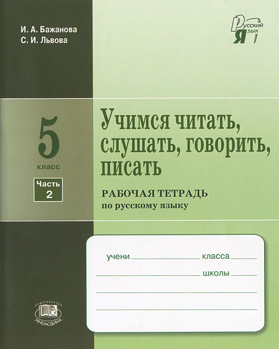| Полное название книги | С. И. Львова, И. А. Бажанова Учимся читать, слушать, говорить и писать. 5 класс. В 2 частях. Часть 2. Рабочая тетрадь |