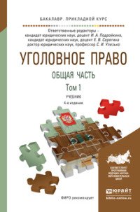 | Полное название книги | Е. В. Серегина, И. А. Подройкина Уголовное право. Общая часть. Учебник. В 2 томах. Том 1 |