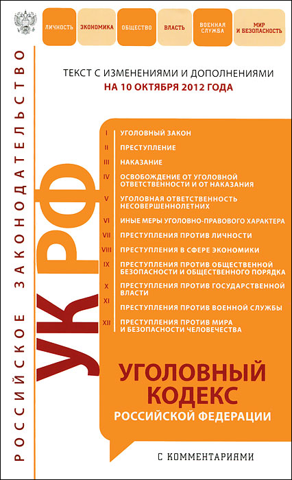 Настоящее справочно-информационное издание содержит текст Уголовного кодекса Российской Федерации по состоянию на 10 октября 2012 года, а также сведения, касающиеся категории преступлений, подсудности и подследственности составов преступлений в соответствии с положениями Уголовно-процессуального кодекса Российской Федерации. Это и многое другое вы найдете в книге Уголовный кодекс Российской Федерации с комментариями (О. О. Скоробогатова, С. А. Перчаткина)