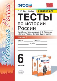 | Полное название книги | С. Е. Воробьева УМК. ТЕСТЫ ПО ИСТОРИИ РОССИИ 6 ТОРКУНОВ. Ч. 1. ФГОС (к новому ФПУ) |