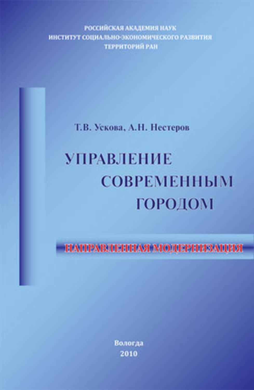 | Полное название книги | Ускова Тамара Витальевна, Нестеров Антон Николаевич Управление современным городом: направленная модернизация |