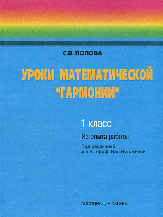 | Полное название книги | С. В. Попова Уроки математической "Гармонии". Из опыта работы по учебнику "Математика. 1класс" автор Н. Б. Истомина |