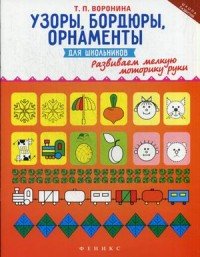 | Полное название книги | Т. П. Воронина Узоры, бордюры, орнаменты для школьников. Развиваем мелкую моторику руки |