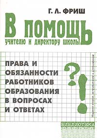 | Полное название книги | Г. Л. Фриш В помощь учителю и директору школы. Права и обязанности работников образования в вопросах и ответах |