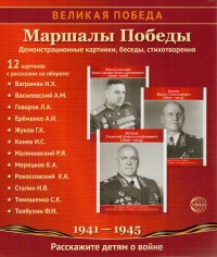 Комплект «Маршалы Победы» посвящен выдающимся военачальникам, которые не только разрабатывали военные операции, но и активно принимали участие в их осуществлении в годы Великой Отечественной войны. Благодаря их полководческому таланту многие стратегические и наступательные операции вошли в историю военного искусства и приблизили победу над фашистской Германией. Лаконичные тексты картинок содержат: – информацию о выдающихся полководцах; – сведения о сражениях и военных операциях Великой Отечественной войны; – отрывки из книг, дневников и воспоминания очевидцев. Информация разбита на удобные для запоминания блоки. Знания даются сжато, но в достаточном для ребенка 6–11 лет объеме. Фотографии маршалов проиллюстрируют рассказ, сделают его образным и интересным. Издание подходит для индивидуальной и групповой работы. Это и многое другое вы найдете в книге Великая Победа. Маршалы победы (Цветкова Татьяна Владиславовна)