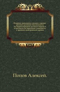 | Полное название книги | А. Попов Влияние церковного учения и древне-русской духовной письменности на миросозерцание русского народа и в частности на народную словесность, в древний допетровский период |