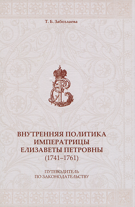 | Полное название книги | Т. Б. Забозлаева Внутренняя политика императрицы Елизаветы Петровны (1741-1761). Путеводитель по законодательству |