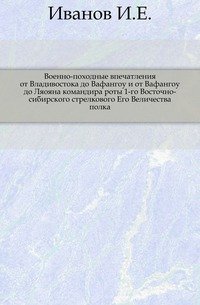 | Полное название книги | И. Е. Иванов Военно-походные впечатления от Владивостока до Вафангоу и от Вафангоу до Ляояна командира роты 1-го Восточно-сибирского стрелкового Его Величества полка |