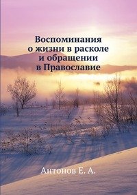 | Полное название книги | Е. А. Антонов Воспоминания о жизни в расколе и обращении в Православие |