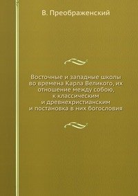 | Полное название книги | В. Преображенский Восточные и западные школы во времена Карла Великого, их отношение между собою, к классическим и древнехристианским и постановка в них богословия |