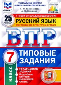 | Полное название книги | Андрей Юрьевич Кузнецов, Людмила Юрьевна Комиссарова ВПР ФИОКО. Русский язык. 7 класс. Типовые задания. 25 вариантов. ФГОС |