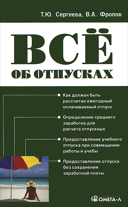| Полное название книги | В. А. Фролов, Т. Ю. Сергеева Все об отпусках |