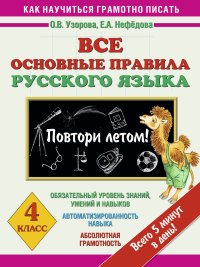 | Полное название книги | О. Узорова, Е. Нефедова Все основные правила русского языка. Повтори летом! 4 класс |