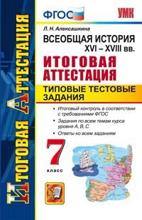 | Полное название книги | Л. Н. Алексашкина Всеобщая история. XVI-XVIII вв. 7 класс. Итоговая аттестация. Типовые тестовые задания |