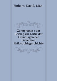 Xenophanes. Ein Beitrag zur Kritik der Grundlagen der bisherigen Philosophiegeschichte. Воспроизведено в оригинальной авторской орфографии издания 1917 года (издательство "Wien W. Braumuller"). Это и многое другое вы найдете в книге Xenophanes (David Einhorn)